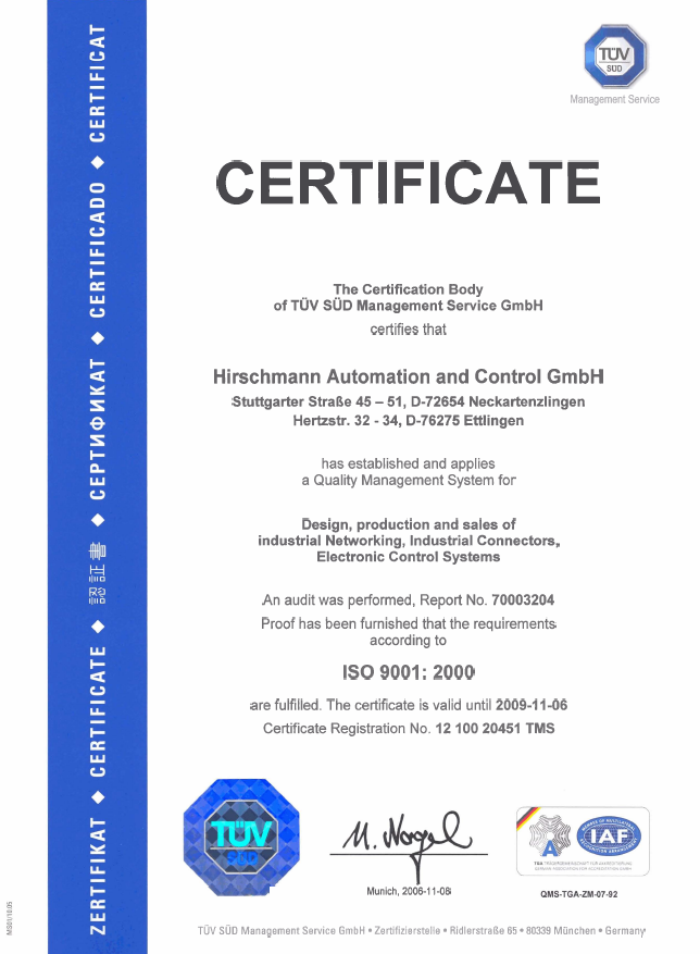 Hirschmann德國赫斯曼ISO9001認(rèn)證
