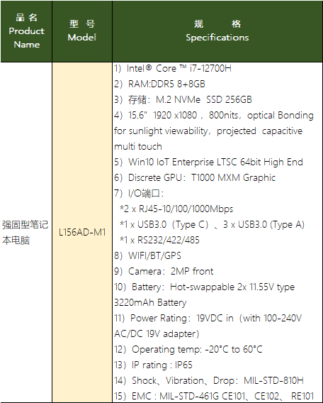 L156AD-M1 15.6英寸強(qiáng)固筆記本電腦