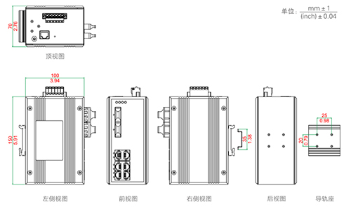 產(chǎn)品帶導(dǎo)軌卡槽、導(dǎo)軌坐及掛耳,用戶可以根據(jù)自己的需求,選擇導(dǎo)軌式安裝或者壁掛式安裝,靈活的安裝方式輕松滿足多種工業(yè)應(yīng)用場景。