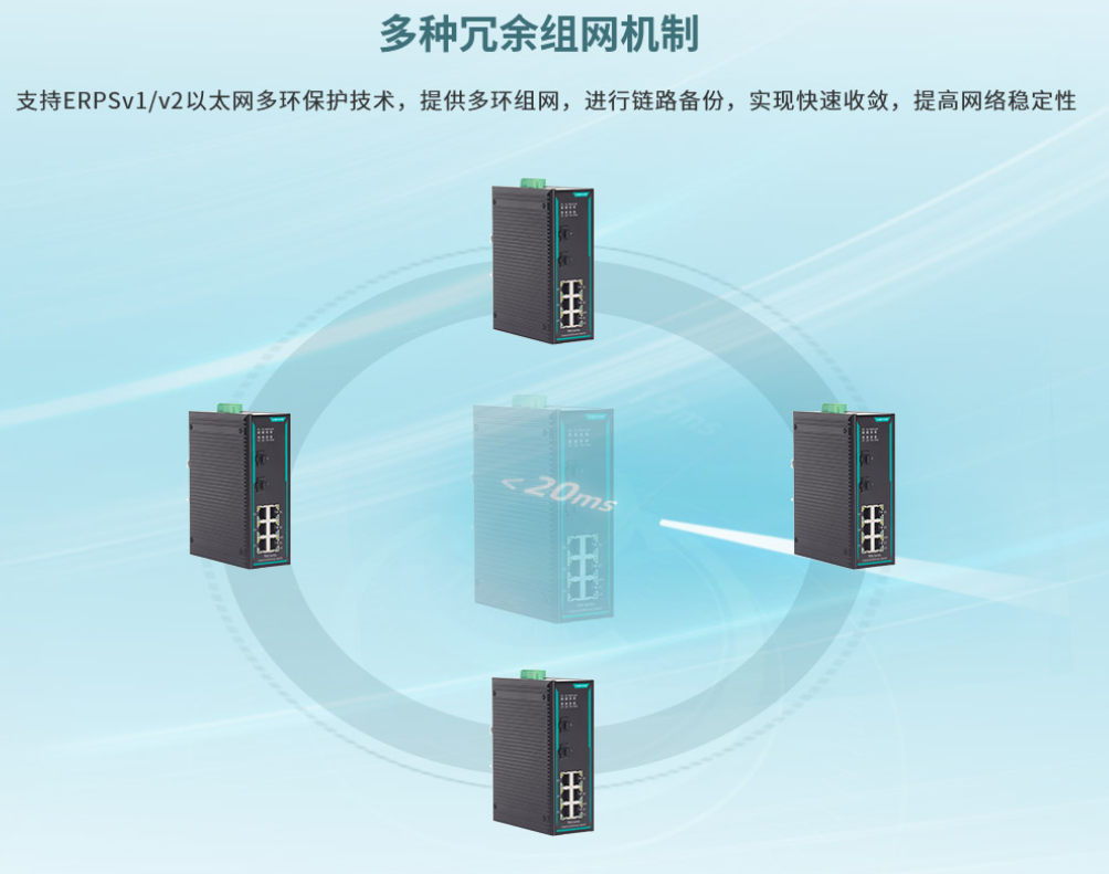 6)支持ERPSv1/v2、STP、RTSP、MSTP環(huán)網(wǎng)協(xié)議,可消除網(wǎng)絡(luò)環(huán)路,提高網(wǎng)絡(luò)可靠性;
