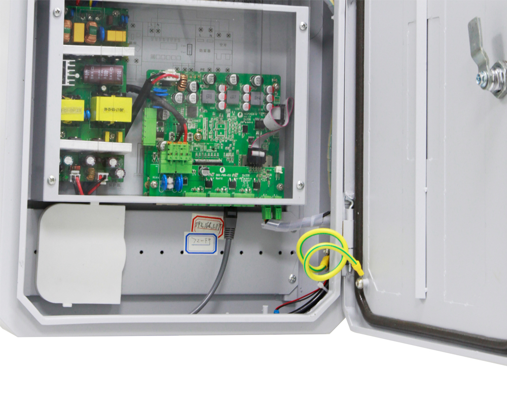 ▲ 內(nèi)置防雷模塊、空氣開關(guān),輸入電壓數(shù)值檢測,提供輸入電壓過壓/欠壓報警提示,雷擊次數(shù)計數(shù)指示。